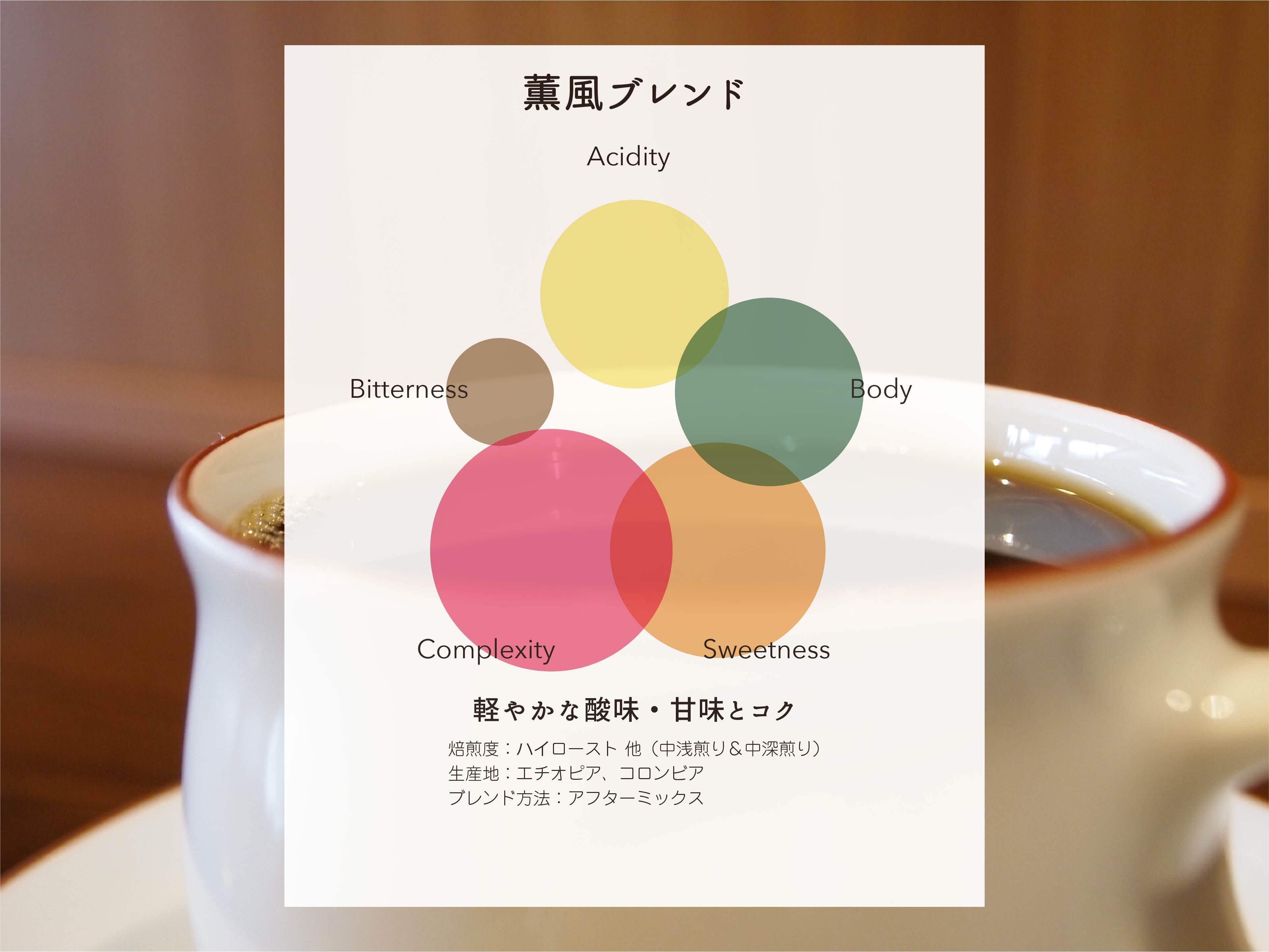 薫りにこだわり2種類のエチオピアをベースに軽やかな酸味・甘味とコクを表現したブレンドです。